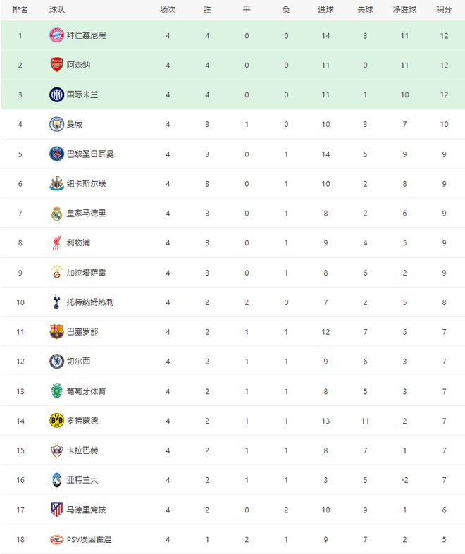 隨著曼城4-1多特,巴薩3-3爆大冷,歐冠最新積分榜:全勝僅剩3隊(duì)
